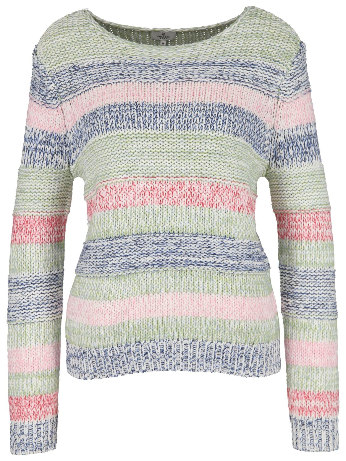 - Griffige Strick-Qualität mit Streifen aus Multicolor-Garn