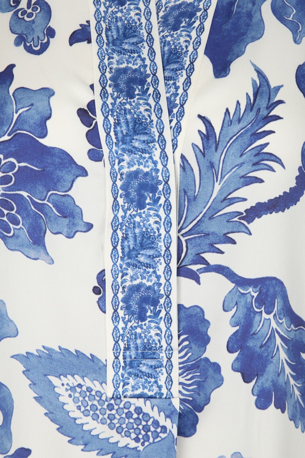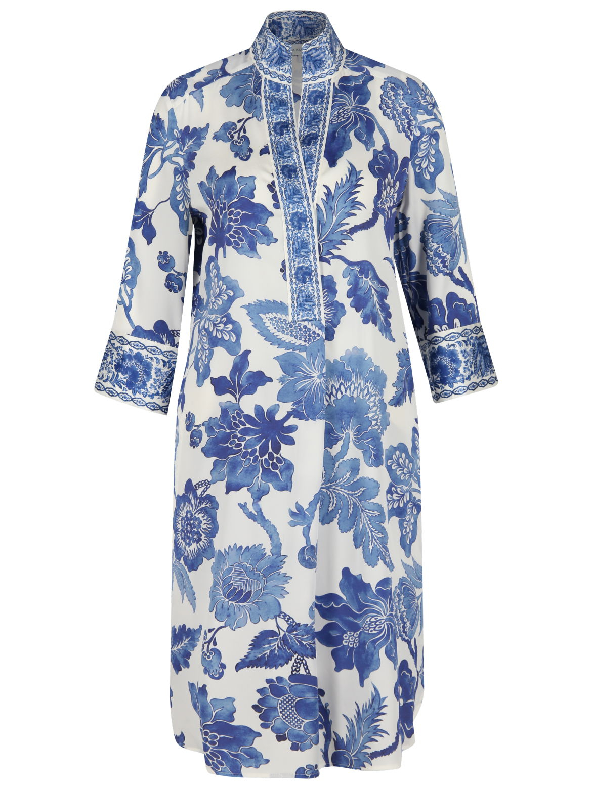 - Stehkragen mit Schlitz-Ausschnitt und kurzer Knopfleiste